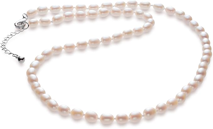 可愛い可愛い本真珠ベビーライスパールネックレスです。 てりとつやは最高級。 形はライス型とこれもまたご愛嬌♪さりげない可愛さと可憐さ、 またゴージャスさが見事に融合したベビーライスパールネックレスです。 こだわりのオールノット仕上げ。 熟練された職人により珠と珠の間に時間をかけて一つずつ結び目を作る高級なお仕立て方法で上品にしあげております。 通常のワイヤー仕上げやシリコン詰とは違い、ネックレスが柔らかく、首回りへの心地いいフィット感や美しいラインが出来上がるのもオールノットならでは。 さらに万が一糸が切れても真珠がばらばらになりません。