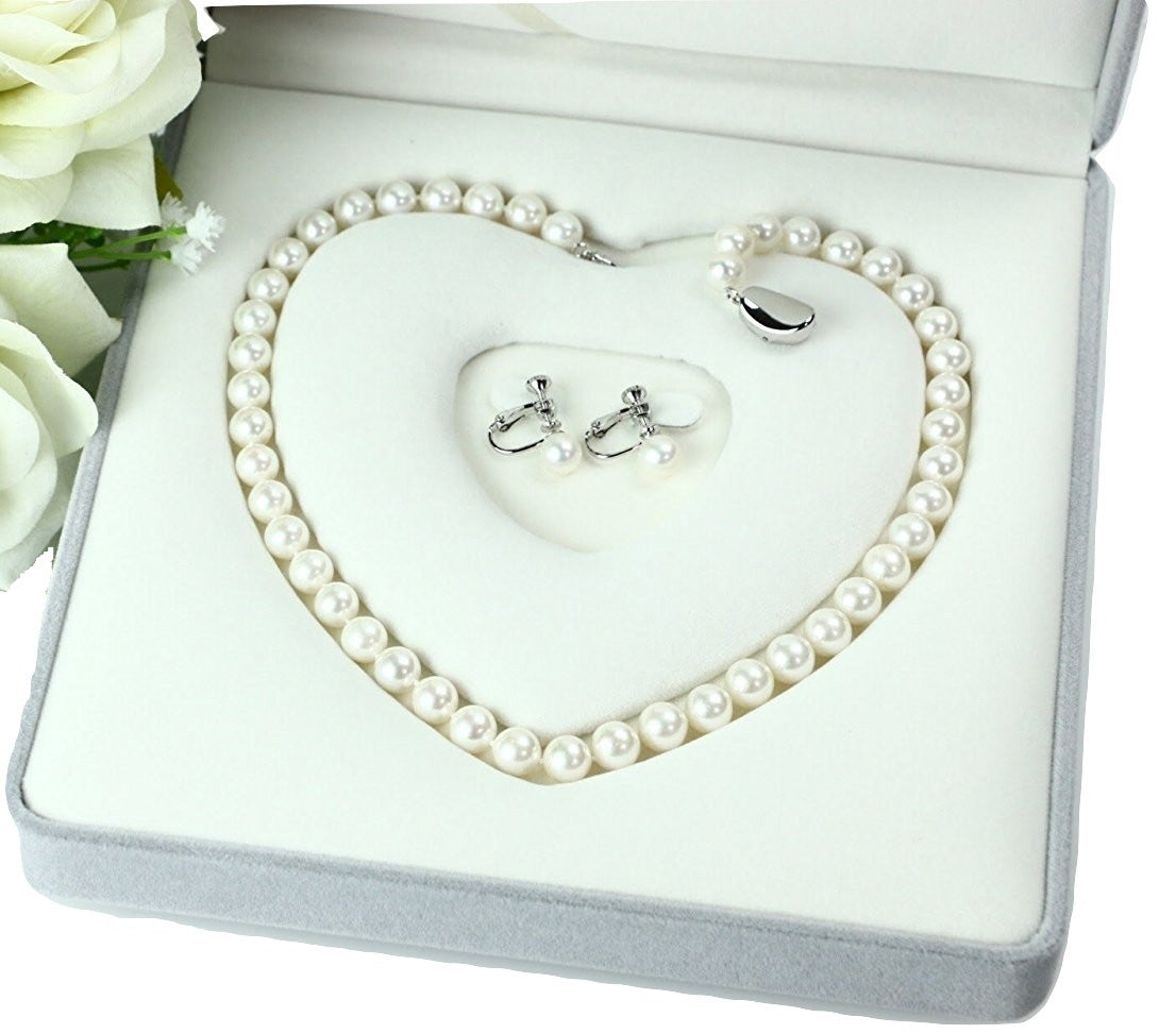 つやたま真珠 ウエディングパール 本真珠ネックレス ピアスorイヤリングセット 8.5-9mm 厳選ラウンド形 ハートキーパーボックス付 花嫁 冠婚葬祭