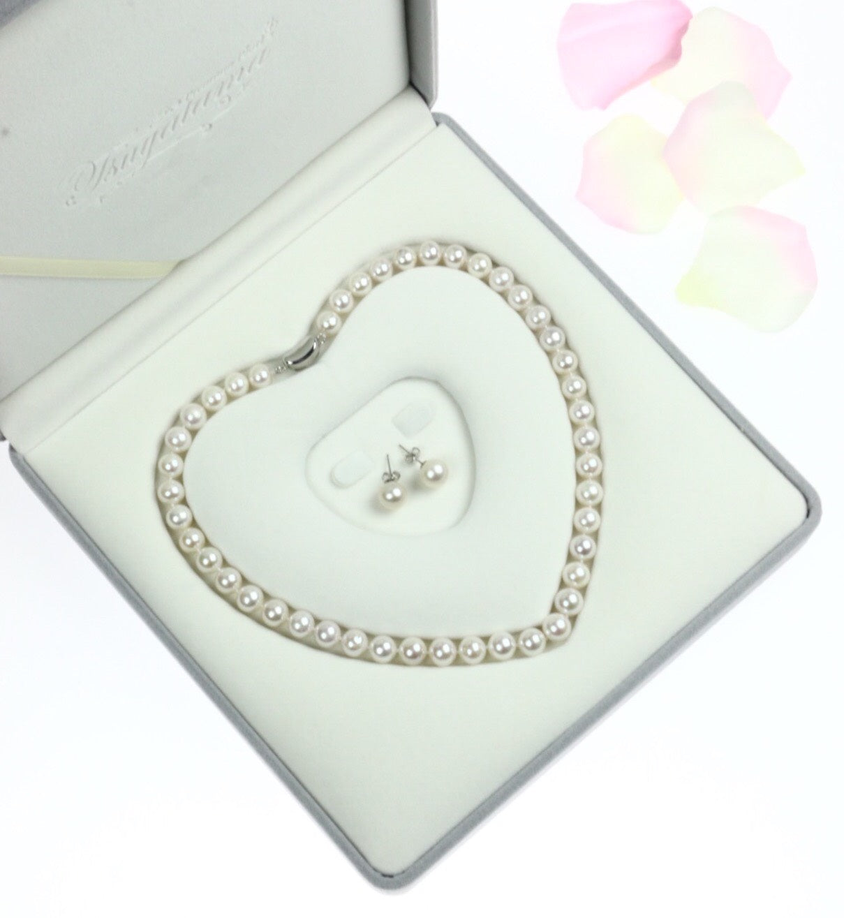 今回特別オリジナル、真珠専用のハートキーパーボックスをセットでお付けいたします。ケースにはつやたまのブランド名が刻印されています。