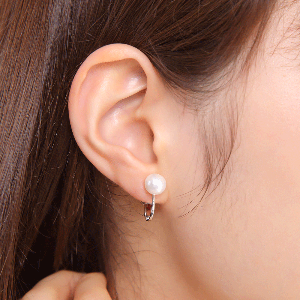 ピアス又イヤリングは、キズなどほぼ見られない高品質の可愛いボタン型を使用。冠婚葬祭用に真珠が揺れないデザインとなっております。
