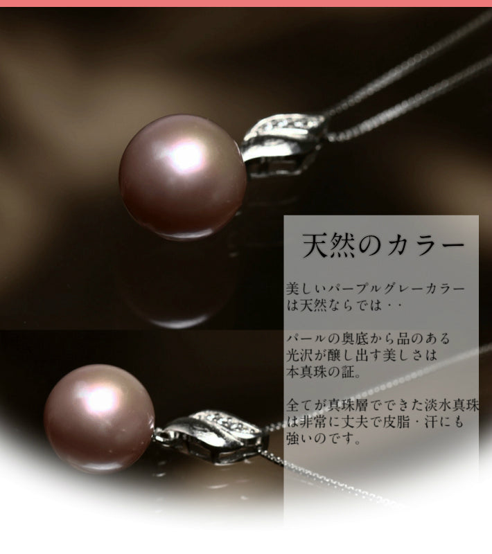 つやたま【最高級 特品】 大粒11-12mm 一粒 本真珠ネックレス シルバー925 一粒パールネックレス (グレーパープル)